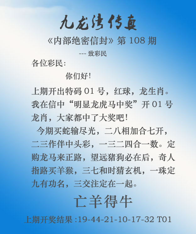 | 276期: ⑦肖 | 鸡鼠马虎狗猪羊 | 蛇01 |