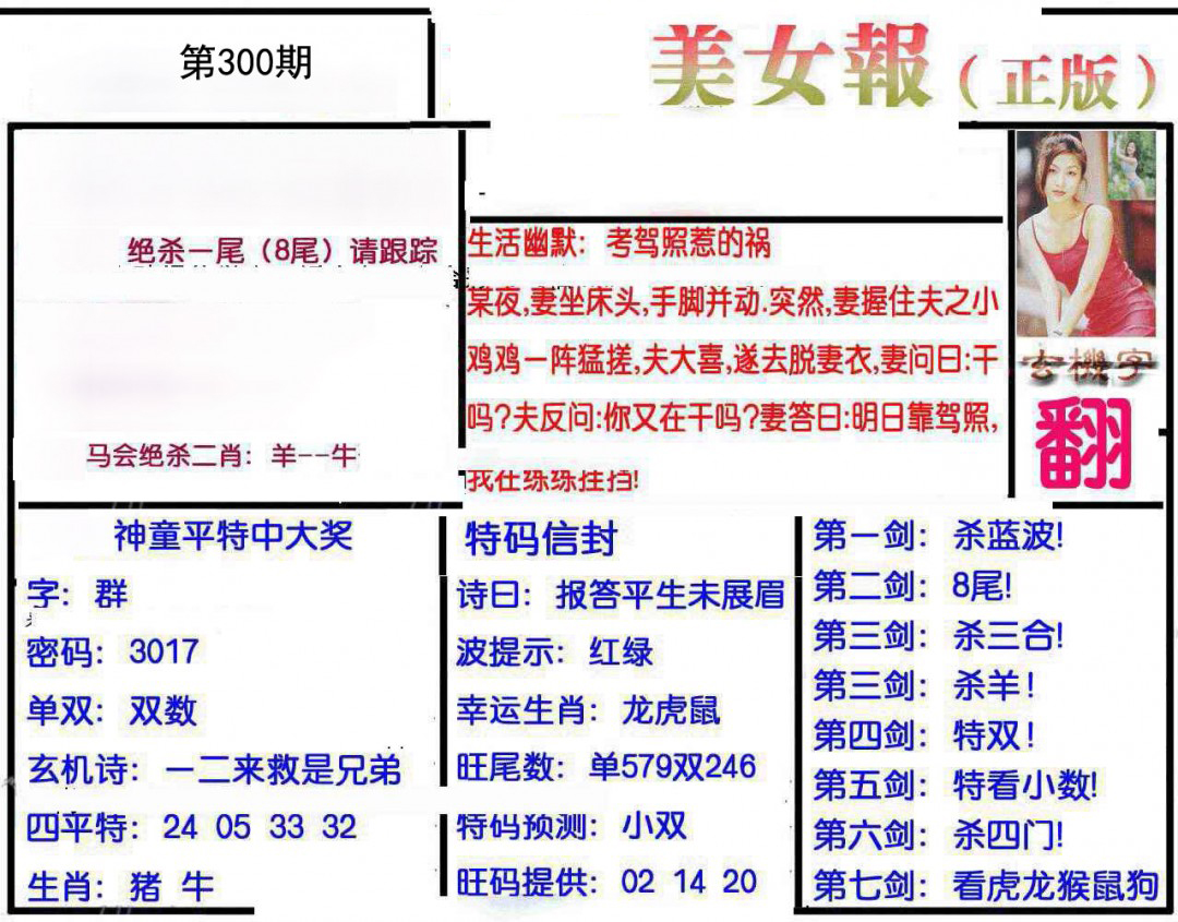 | 300期: | 平特二肖-->马蛇 | ?00 |