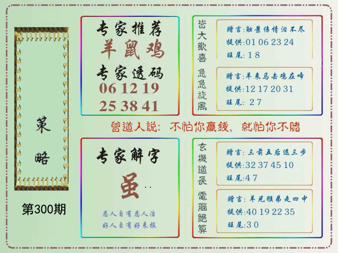 | 278期: ④肖 | 虎蛇羊兔 | 鼠06 |
